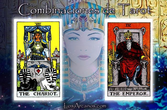El Emperador en posición normal simboliza el control y la autoridad. El Carro invertido sugiere dificultades para avanzar. Encuentra la estabilidad y la dirección en tu vida, mantén la confianza en ti mismo para superar obstáculos y liderar con éxito.