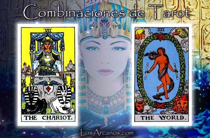 Simboliza al hombre que por efecto de su voluntad ha conseguido dominar las oposiciones y ha unificado las tendencias contrarias. Nos encontramos aquí en el ámbito de la acción personal situada en el espacio y el tiempo. La fatalidad se ha superado; el hombre ha elegido, se ha hecho cargo de sí mismo y es el amo victorioso que marcha de frente. Muchas veces El carro aparecerá, sorpresivamente, en momentos en los que nos vemos acuciados por la angustia de creer que aquello por lo que luchamos nunca se verá coronado por el triunfo. Pero si El carro aparece, siempre tendrá sus motivos; seguramente nos esté alentando a continuar en la misma dirección, a no abandonar nuestros esfuerzos. El Carro también representa el control de la mente humana sobre las pasiones animales y el instinto, ó más esotéricamente, el Yo Superior sobre los bajos egos y agregados psicológicos. Ayuda a superar los miedos y los complejos, y a vencer en nuestras situaciones. En una tirada, nos puede indicar que las cosas irán mas deprisa de lo que esperábamos. Muchas veces meramente indica rapidez o también cambios como mudanzas o viajes, o incluso FESTEJOS.