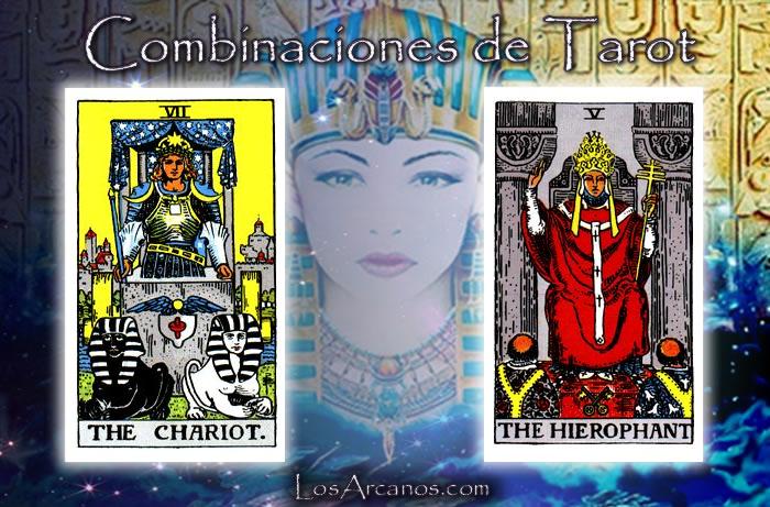 La carta de El sumo Sacerdote en el tarot siempre es sinónimo de conocimiento, bunas maneras y poder de convicción, lo cual unido al Carro hacen de esta combinación una muy sugerente y prometedora, sea cual sea el tema que se haya decidido a consultar.
