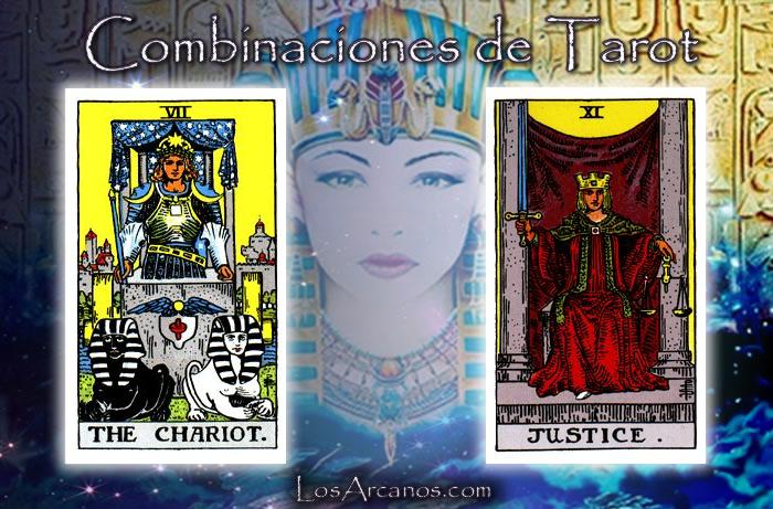 Simboliza al hombre que por efecto de su voluntad ha conseguido dominar las oposiciones y ha unificado las tendencias contrarias. Nos encontramos aquí en el ámbito de la acción personal situada en el espacio y el tiempo. La fatalidad se ha superado; el hombre ha elegido, se ha hecho cargo de sí mismo y es el amo victorioso que marcha de frente. Muchas veces El carro aparecerá, sorpresivamente, en momentos en los que nos vemos acuciados por la angustia de creer que aquello por lo que luchamos nunca se verá coronado por el triunfo. Pero si El carro aparece, siempre tendrá sus motivos; seguramente nos esté alentando a continuar en la misma dirección, a no abandonar nuestros esfuerzos. El Carro también representa el control de la mente humana sobre las pasiones animales y el instinto, ó más esotéricamente, el Yo Superior sobre los bajos egos y agregados psicológicos. Ayuda a superar los miedos y los complejos, y a vencer en nuestras situaciones. En una tirada, nos puede indicar que las cosas irán mas deprisa de lo que esperábamos. Muchas veces meramente indica rapidez o también cambios como mudanzas o viajes, o incluso FESTEJOS.