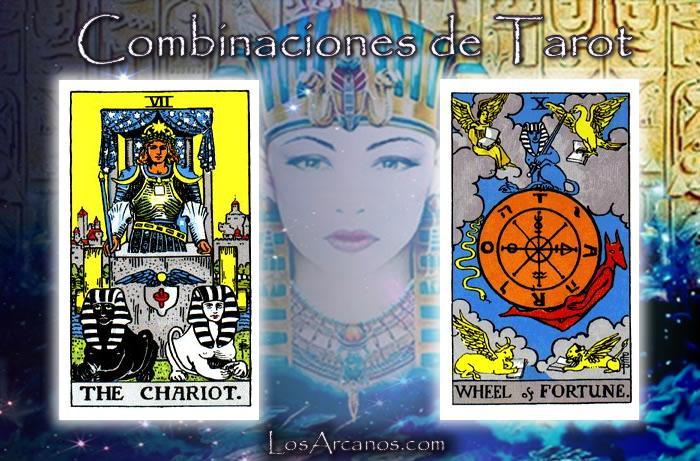 El Carro invertido sugiere un desequilibrio en tu dirección. La Rueda de la Fortuna, en su posición normal, señala cambios inevitables. Acepta y adapta, confía en que el destino te llevará hacia nuevas oportunidades