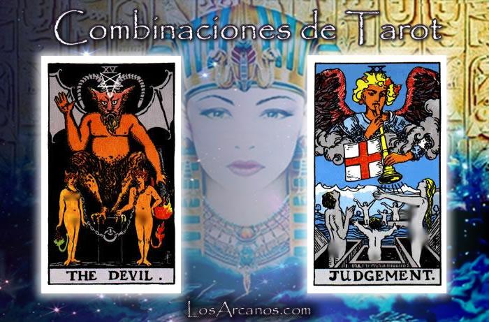 Nos encontramos ante otra combinación de cartas en las que el significado de El Diablo se va a ver atenuado por salir acompañado de un arcano mayor, como es El Juicio, que mitiga la negatividad del mismo.
