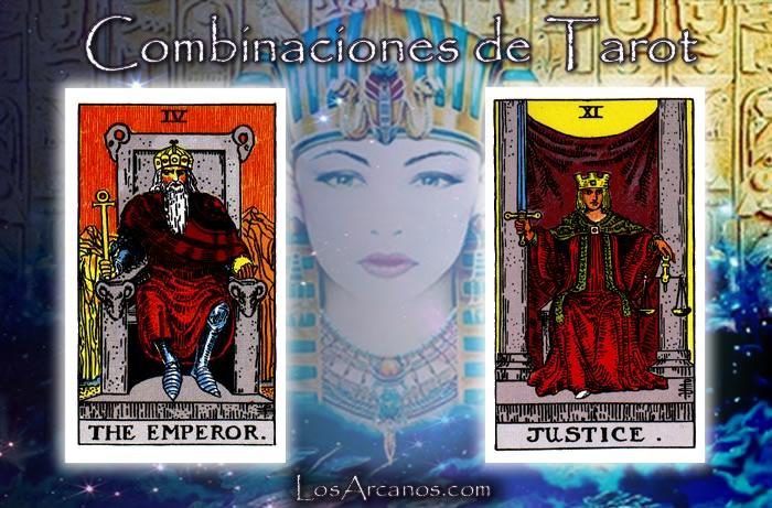 Injusticia o asunto ilegal. Conformismo. (Con el Emperador y la Justicia al revés: tremendo fanatismo e intolerancia). Enamorado serio y sincero Amor: Esta combinación es la representación inequívoca de un matrimonio o una unión aún más fuerte de la que tienes. Si no tienes pareja, entonces te anuncia la llegada de un compromiso o una relación seria que encaja perfectamente contigo. Salud: Salud totalmente equilibrada. Aunque debes darle “más alegría” al cuerpo. Dinero: A nivel económico esta combinación te anuncia solvencia económica. Si tienes asuntos legales relacionados con estos temas, tales como herencias o cosas parecidas, saldrán a tu favor. Trabajo: Si tienes empleo, habla de estabilidad, si no lo tienes, firmarás un contrato que te dará estabilidad.