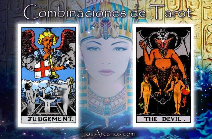 Nos encontramos ante otra combinación de cartas en las que el significado de El Diablo se va a ver atenuado por salir acompañado de un arcano mayor, como es El Juicio, que mitiga la negatividad del mismo.