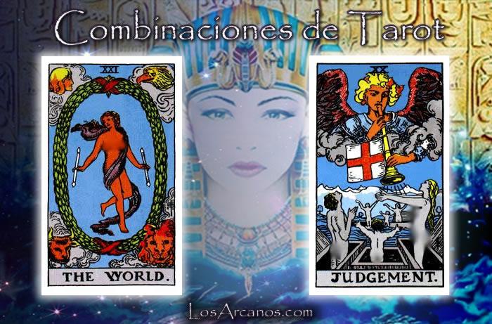 Unidas en una tirada de cartas, El Juicio y El Mundo hablan de buenas noticias que llegan, situaciones que se desbloquean y cambian de tendencia para que el consultante logre sus metas.