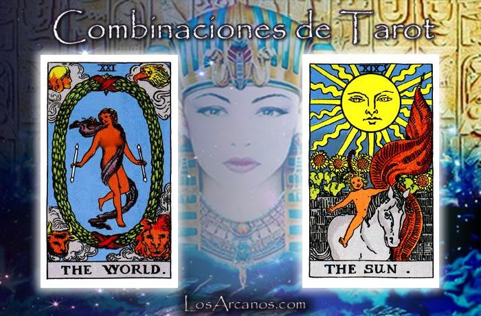 Es, junto con el Sol, la carta más afortunada de la baraja y la más reconfortante. La carta del Mundo viene a indicarnos el buen fin de nuestros proyectos. Estamos trabajando en algo que llegará a un éxito completo. Según cual sea la consulta, el éxito puede ser de diferentes tipos: el nacimiento de un hijo, una relación que acaba en matrimonio, conseguir un puesto de trabajo, un ascenso. Se trata de un logro para el futuro, no uno cualquiera sino uno de gran entidad, que nos hará sentir plenamente felices. A diferencia de la carta de la Estrella, en que se vaticinan buenas noticias, aquí el mensaje es más rotundo. No es una buena nueva, sino la consecución plena a nuestro trabajo y méritos llevados a cabo durante tanto tiempo. El Mundo es la carta perfecta cuando se desea saber si se saldrá totalmente repuesto de una enfermedad: así será.