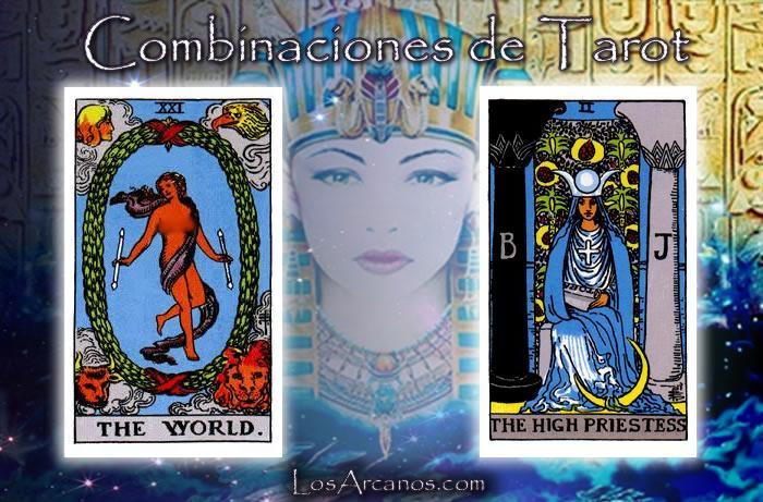 Es, junto con el Sol, la carta más afortunada de la baraja y la más reconfortante. La carta del Mundo viene a indicarnos el buen fin de nuestros proyectos. Estamos trabajando en algo que llegará a un éxito completo. Según cual sea la consulta, el éxito puede ser de diferentes tipos: el nacimiento de un hijo, una relación que acaba en matrimonio, conseguir un puesto de trabajo, un ascenso. Se trata de un logro para el futuro, no uno cualquiera sino uno de gran entidad, que nos hará sentir plenamente felices. A diferencia de la carta de la Estrella, en que se vaticinan buenas noticias, aquí el mensaje es más rotundo. No es una buena nueva, sino la consecución plena a nuestro trabajo y méritos llevados a cabo durante tanto tiempo. El Mundo es la carta perfecta cuando se desea saber si se saldrá totalmente repuesto de una enfermedad: así será.