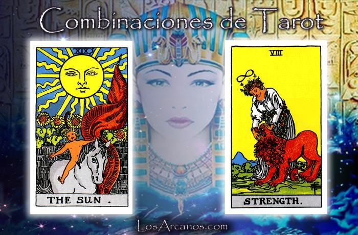 Simbolizan la determinación, la firmeza y el poder real de la voluntad, el arcano de la Fuerza encarna toda la riqueza interior del individuo, y el Sol la felicidad que está en capacidad de sentir.