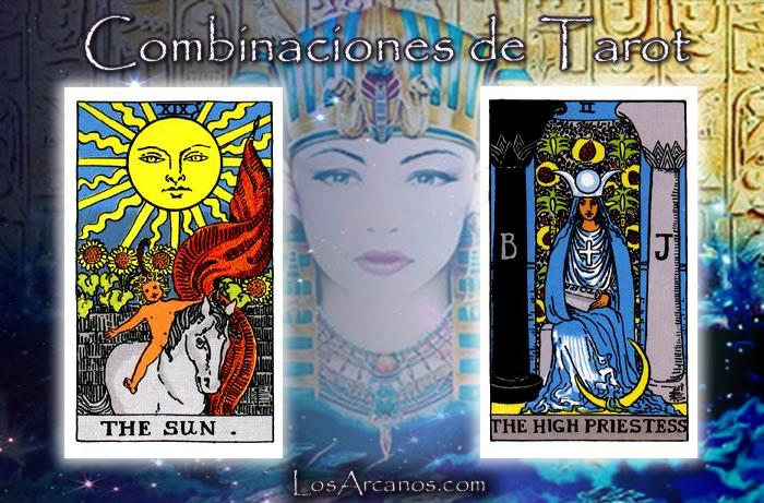 La Sacerdotisa en posición normal revela tu conexión con la sabiduría interna. El Sol invertido sugiere momentos de sombra. Confía en tu intuición para encontrar la luz en la oscuridad y mantener la confianza en ti mismo.