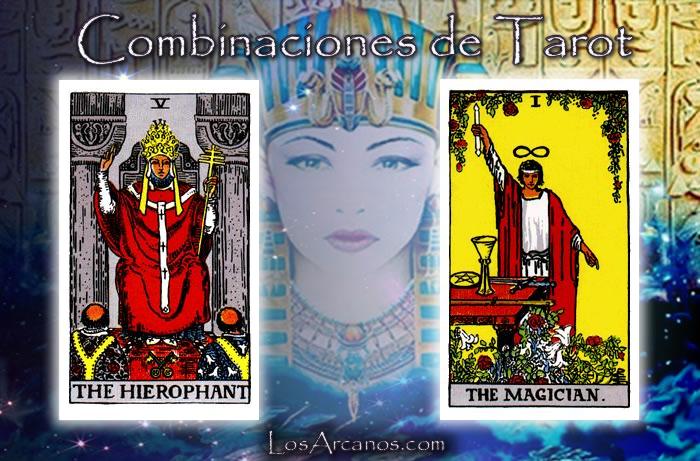 El Mago en posición normal simboliza habilidades y poderes creativos. El Sumo Sacerdote invertido indica un conflicto con las creencias tradicionales. Confía en tu intuición y busca respuestas fuera de lo convencional.