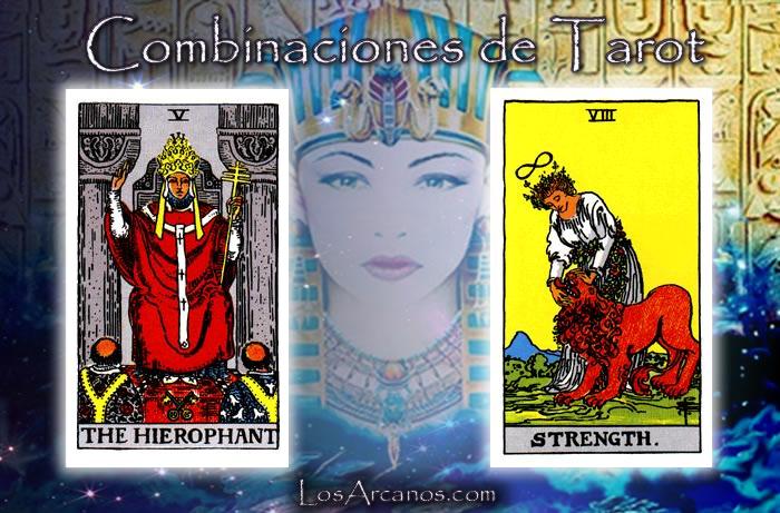 Anuncian estas dos cartas juntas el triunfo de la voluntad que es lo que significa La Fuerza, que unida al poder de convicción de El Sumo Sacerdote, hacen que el augurio sea favorable, pero el consultante tiene que ser consciente que no va a ser fácil.