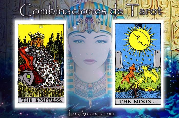 Enemigos. La Luna es la carta de lo oculto, lo ignoto y desconocido. Puede en ese sentido reflejar engaños, ocultaciones, mentiras, enemigos ocultos. Pero también referirse al mundo de lo inconsciente: fuerzas psíquicas que escapan a la razón y que nos descontrolan. Miedos internos. La Luna representa nuestros miedos o falsas ilusiones: a la oscuridad, a la noche, a los animales, a nosotros mismos. Es fácil perder nuestro camino en la luz de la luna. Asegúrate de que las decepciones y las falsas ideas no guíen tu camino. Algunas veces la Luna es una señal de que estás perdido y vagabundeando sin ánimo. Debes encontrar tu camino firme y la claridad en tu propósito. Psiquismo. Es una carta muy femenina, indicando el comportamiento a veces irracional, siempre muy emocional, de la mujer cuando se encuentra bajo presión. Esta emotividad y capacidad superior pueden explotarse en el mundo de las ciencias del alma: las visiones que escapan a la razón, el psiquismo, la videncia. Largos viajes. La carta puede referirse a un viaje a través del mar, de larga distancia. Las consecuencias en el mismo son desconocidas. La noche. La carta se refiere a todo lo relacionado con la noche. Puede significar en ese sentido conocer a tu pareja en una salida nocturna, o que sea una persona que trabaja por la noche. Maternidad. Es una carta de maternidad y puede indicar embarazos. Es muy difícil transmitir el verdadero significado del Arcano LA LUNA. No porque sea muy complicado en sí mismo, sino porque el interlocutor fácilmente se niega a aceptar que sus sentimientos le han jugado una mala pasada