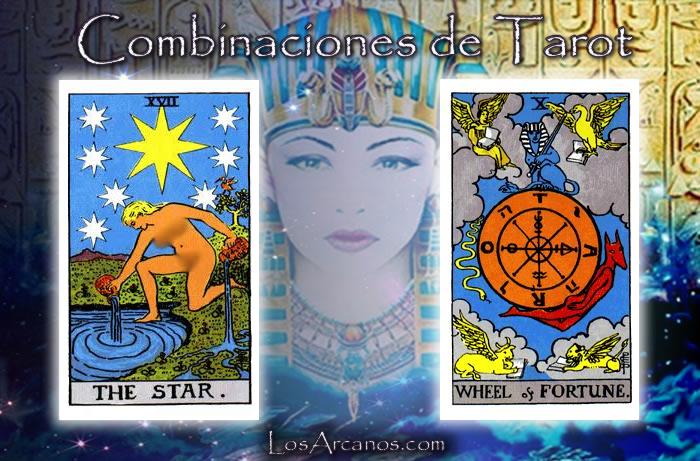 La Rueda de la Fortuna invertida indica un período de estancamiento o mala suerte. La Estrella, en su posición normal, trae esperanza y renovación. Confía en que la luz volverá a brillar en tu camino.