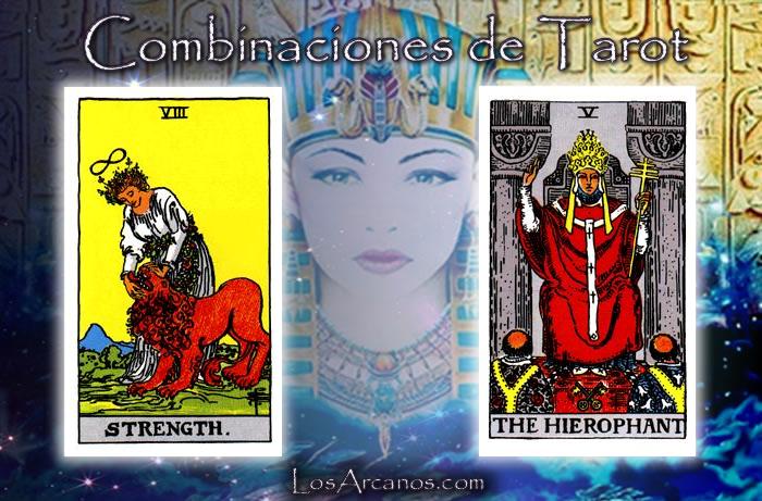 Anuncian estas dos cartas juntas el triunfo de la voluntad que es lo que significa La Fuerza, que unida al poder de convicción de El Sumo Sacerdote, hacen que el augurio sea favorable, pero el consultante tiene que ser consciente que no va a ser fácil.