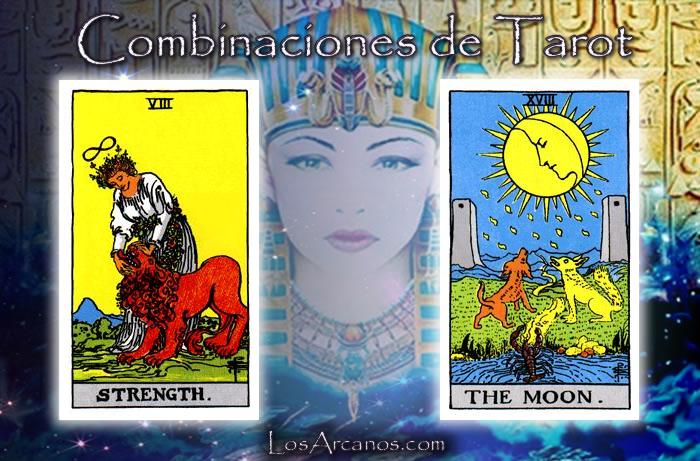 La Fuerza invertida indica falta de control sobre tus emociones o impulsos. La Luna, en su posición normal, sugiere confusión y misterio. Encara tus temores y emociones para aclarar la incertidumbre en tu vida.