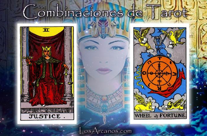 La Justicia en con el Arcano la Rueda de la Fortuna son una de las combinaciones más estimulantes que se pueden dar en una tirada de tarot, ya que el augurio que nos dan es excelente ante cualquier cuestión que se haya planteado.