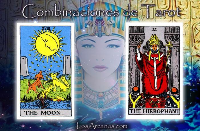 El Sumo Sacerdote en el tarot significa el convencimiento, la austeridad aparente, pero la aparición de La Luna hará que afloren situaciones poco agradables, desconocidas, y esto hará que el consultante cambie de opinión sobre lo que realmente quiere.