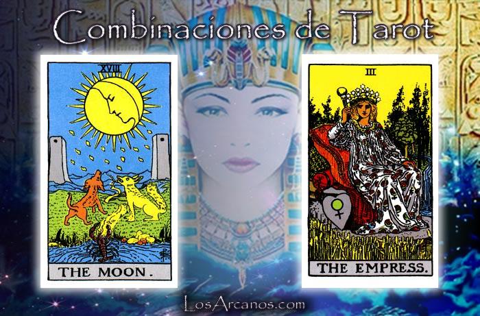 Enemigos. La Luna es la carta de lo oculto, lo ignoto y desconocido. Puede en ese sentido reflejar engaños, ocultaciones, mentiras, enemigos ocultos. Pero también referirse al mundo de lo inconsciente: fuerzas psíquicas que escapan a la razón y que nos descontrolan. Miedos internos. La Luna representa nuestros miedos o falsas ilusiones: a la oscuridad, a la noche, a los animales, a nosotros mismos. Es fácil perder nuestro camino en la luz de la luna. Asegúrate de que las decepciones y las falsas ideas no guíen tu camino. Algunas veces la Luna es una señal de que estás perdido y vagabundeando sin ánimo. Debes encontrar tu camino firme y la claridad en tu propósito. Psiquismo. Es una carta muy femenina, indicando el comportamiento a veces irracional, siempre muy emocional, de la mujer cuando se encuentra bajo presión. Esta emotividad y capacidad superior pueden explotarse en el mundo de las ciencias del alma: las visiones que escapan a la razón, el psiquismo, la videncia. Largos viajes. La carta puede referirse a un viaje a través del mar, de larga distancia. Las consecuencias en el mismo son desconocidas. La noche. La carta se refiere a todo lo relacionado con la noche. Puede significar en ese sentido conocer a tu pareja en una salida nocturna, o que sea una persona que trabaja por la noche. Maternidad. Es una carta de maternidad y puede indicar embarazos. Es muy difícil transmitir el verdadero significado del Arcano LA LUNA. No porque sea muy complicado en sí mismo, sino porque el interlocutor fácilmente se niega a aceptar que sus sentimientos le han jugado una mala pasada