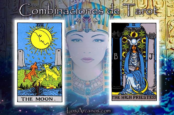 La Sacerdotisa invertida señala desconexión con tu intuición. La Luna sugiere que hay asuntos ocultos o engaños. Presta atención a tus sueños y emociones para descubrir verdades escondidas.