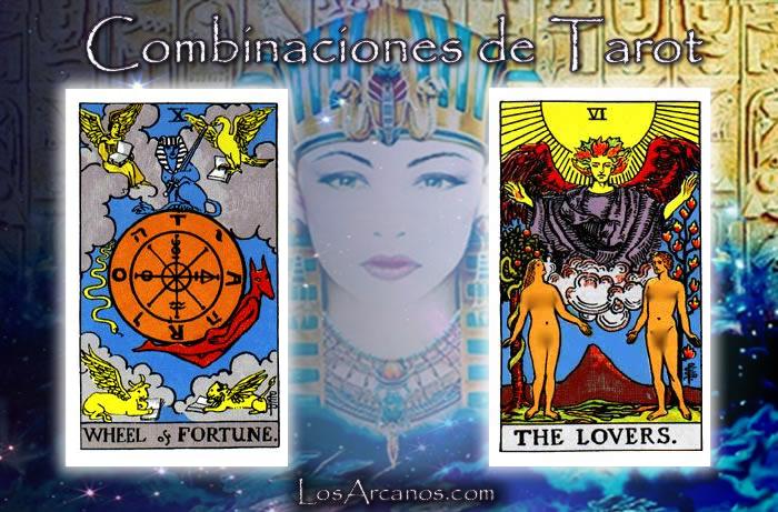 Los Enamorados invertidos indican conflicto o indecisión en relaciones o elecciones. La Rueda de la Fortuna, en su posición normal, sugiere que los cambios venideros serán clave para resolver estas tensiones.