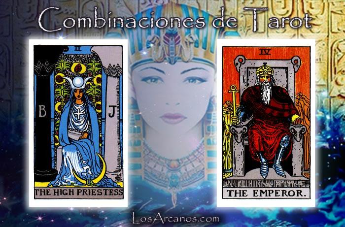 La Sacerdotisa invertida indica falta de intuición o secretos revelados. El Emperador invertido señala una falta de autoridad o control. Enfrenta la situación con sabiduría y toma decisiones basadas en la reflexión y la comprensión.