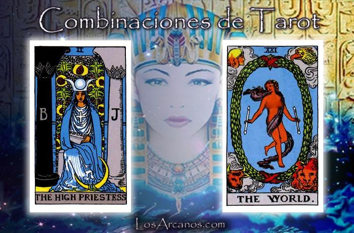 Es, junto con el Sol, la carta más afortunada de la baraja y la más reconfortante. La carta del Mundo viene a indicarnos el buen fin de nuestros proyectos. Estamos trabajando en algo que llegará a un éxito completo. Según cual sea la consulta, el éxito puede ser de diferentes tipos: el nacimiento de un hijo, una relación que acaba en matrimonio, conseguir un puesto de trabajo, un ascenso. Se trata de un logro para el futuro, no uno cualquiera sino uno de gran entidad, que nos hará sentir plenamente felices. A diferencia de la carta de la Estrella, en que se vaticinan buenas noticias, aquí el mensaje es más rotundo. No es una buena nueva, sino la consecución plena a nuestro trabajo y méritos llevados a cabo durante tanto tiempo. El Mundo es la carta perfecta cuando se desea saber si se saldrá totalmente repuesto de una enfermedad: así será.