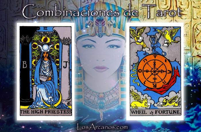 La Sacerdotisa invertida sugiere falta de intuición o secretos revelados que afectan a tu destino. La Rueda de la Fortuna invertida indica un estancamiento en el ciclo de la vida. Busca la claridad y toma control de tu camino