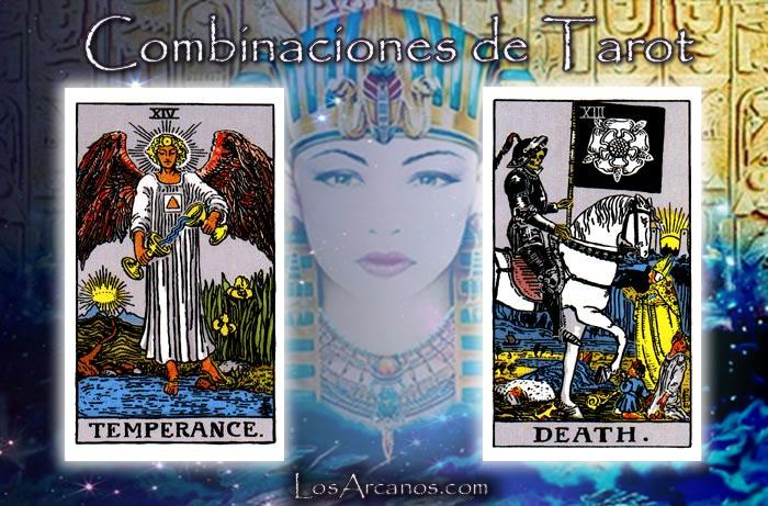 La Muerte invertida indica resistencia al cambio o transformación. La Templanza, en su posición normal, llama a la moderación y el equilibrio. Acepta la transformación con paciencia y encuentra la armonía en el proceso
