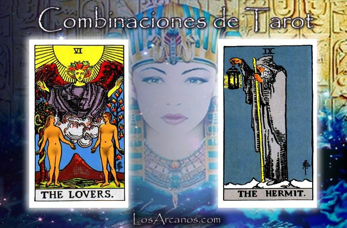 Los Enamorados en posición normal simbolizan el amor y las decisiones emocionales. El Ermitaño invertido sugiere una resistencia a la soledad. Es un recordatorio de buscar conexiones significativas y abrir tu corazón.