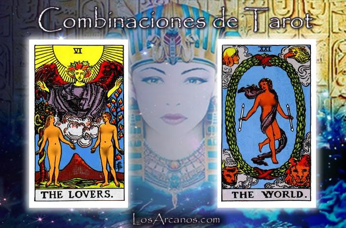 Los Enamorados invertidos indican desafíos en relaciones o decisiones amorosas. El Mundo, en su posición normal, señala logros y culminaciones. Resuelve los obstáculos en el amor para alcanzar la plenitud.