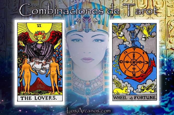Los Enamorados invertidos indican conflicto o indecisión en relaciones o elecciones. La Rueda de la Fortuna, en su posición normal, sugiere que los cambios venideros serán clave para resolver estas tensiones.