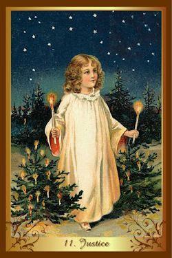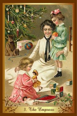 In this deck we find the smiling faces of babies and their parents, reindeer, elves and Santa Claus. The colors red and green predominate, as well as the color gold. These are colors that represent the passion and feelings of the color red, the relaxation and balance of the color green and the call to fortune and the richness of the color gold